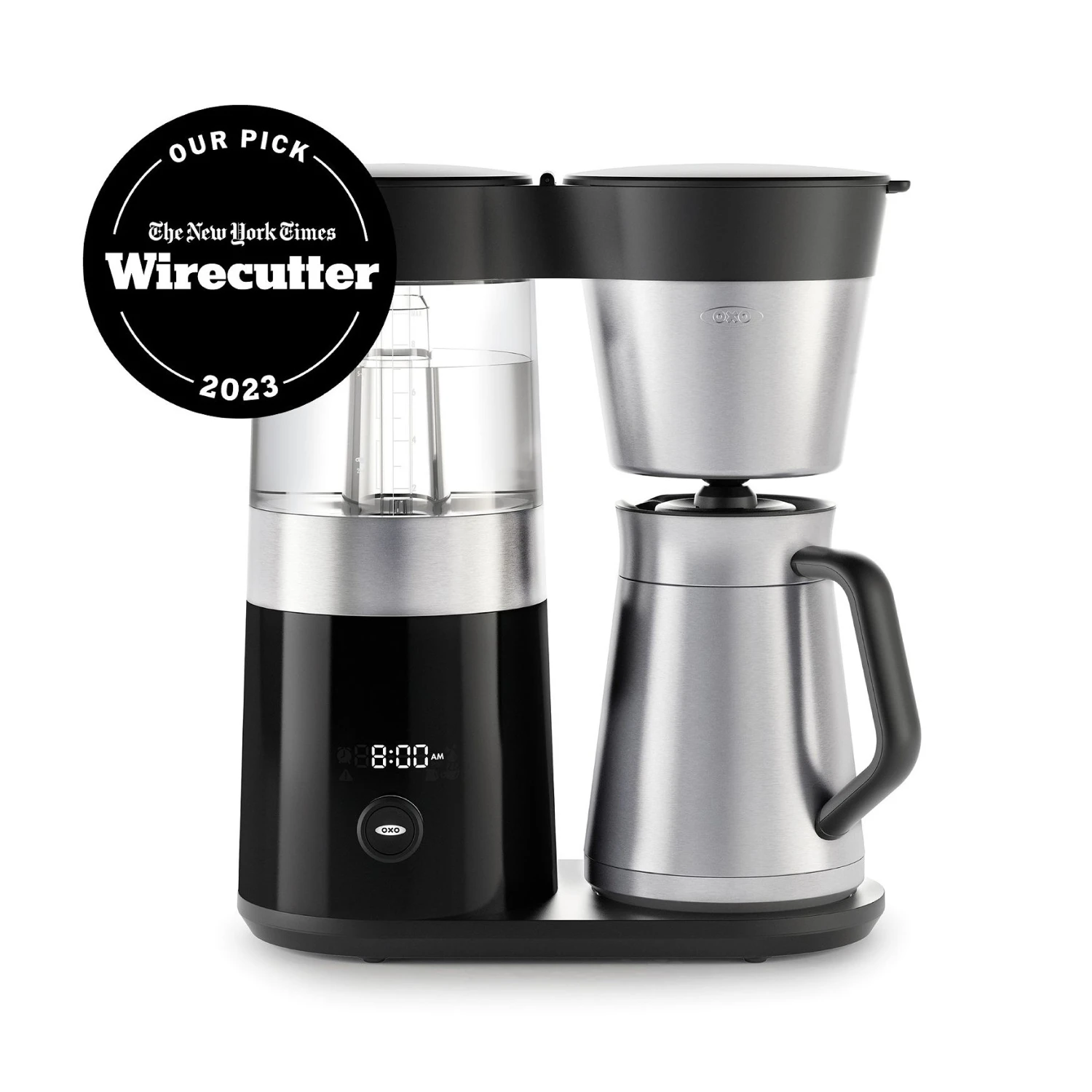 We designed the OXO Brew 9-Cup Coffee Maker to regulate brew time, water temperature and volume, the three variables that can make or break a pot of coffee. Just add water and ground coffee and select the number of cups to brew – the machine will handle the rest. The OXO Brew 9-Cup Coffee Maker is recognized as an exemplary home brewer by the SCA (Specialty Coffee Association) for delivering rich, gold-standard coffee – every time. 120V/60Hz voltage.