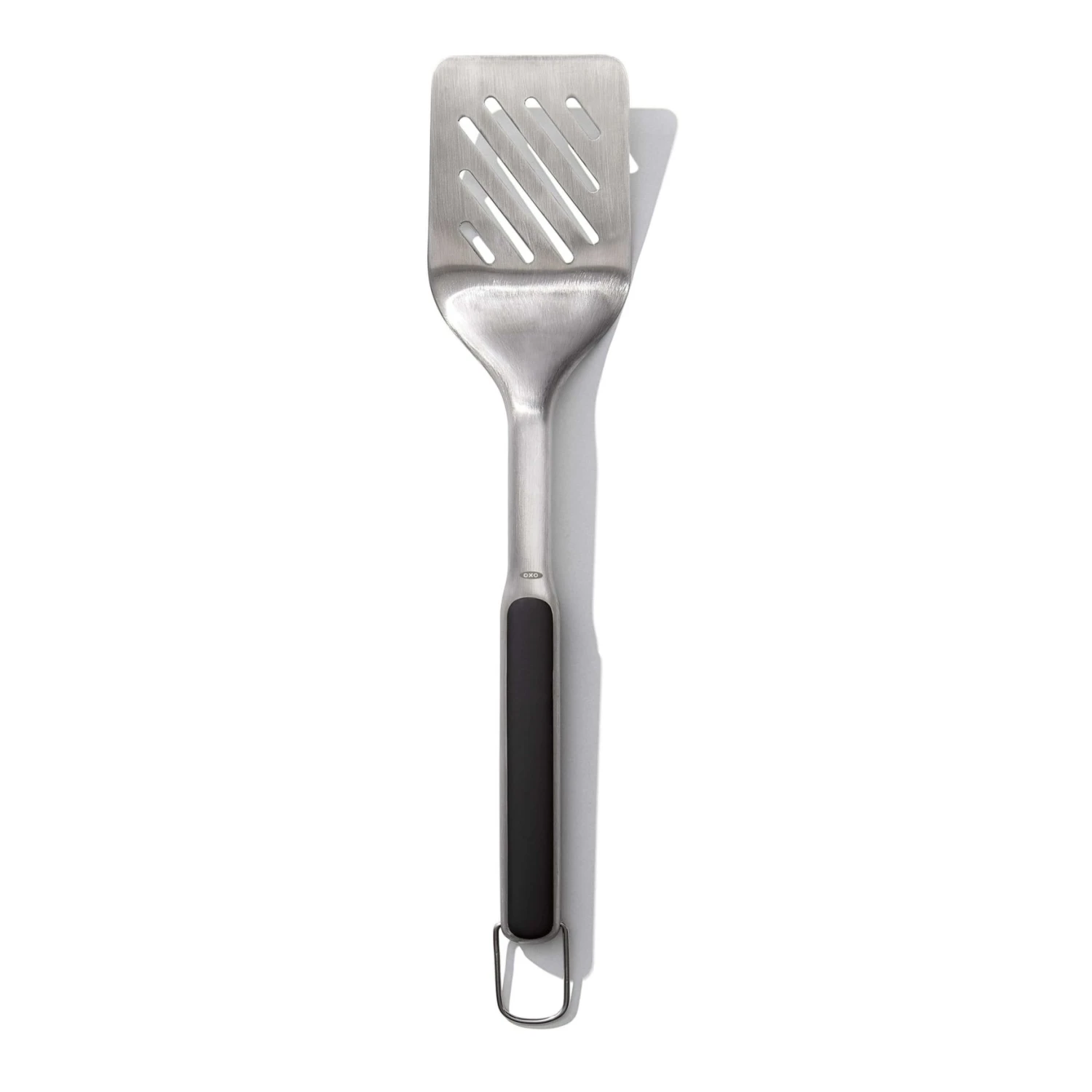 Next time you step up to the grill, reach for a tool you can depend on. Constructed from durable, rust-resistant stainless steel, OXO Good Grips Grilling Turner has a wide, beveled head that slides smoothly under everything from burgers to salmon filets. The double-bend design provides leverage for lifting and transferring, and the comfortable, non-slip grip stays secure in your hand. Dishwasher safe.