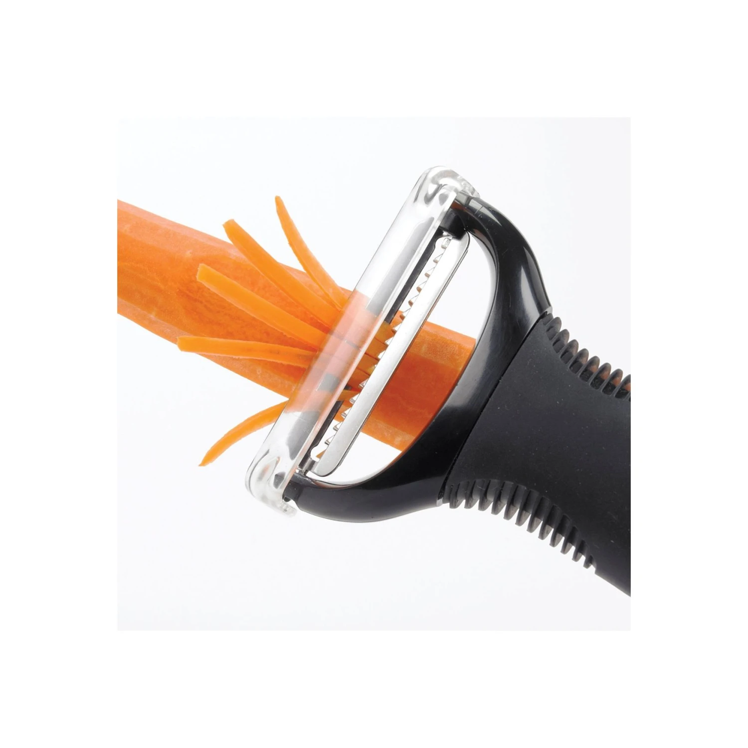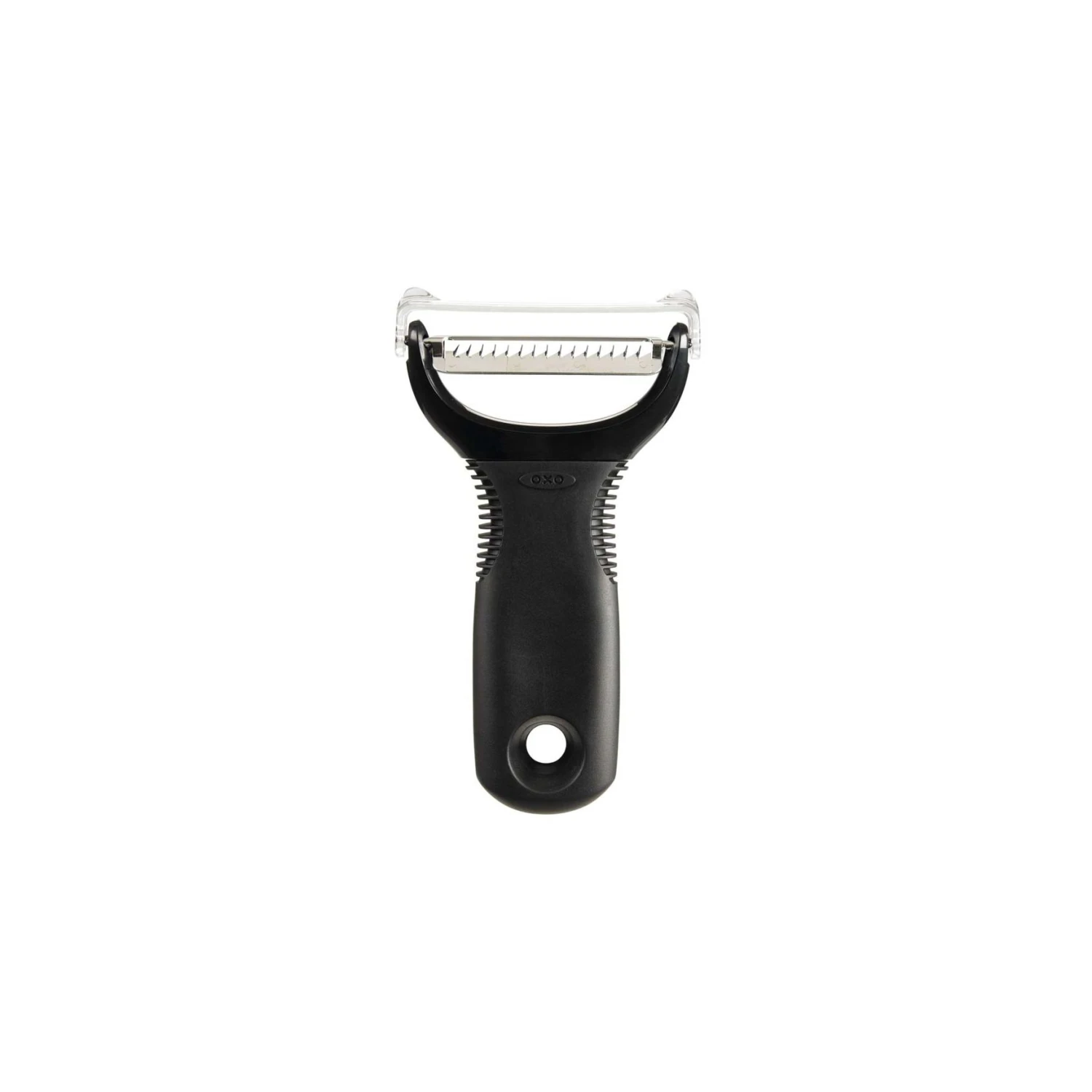 With this Julienne Peeler, you can quickly and safely make garnishes, salad toppings, citrus zest and more. The clear safety cover flips out of the way while you peel, but locks back into place as a protective cover during storage.