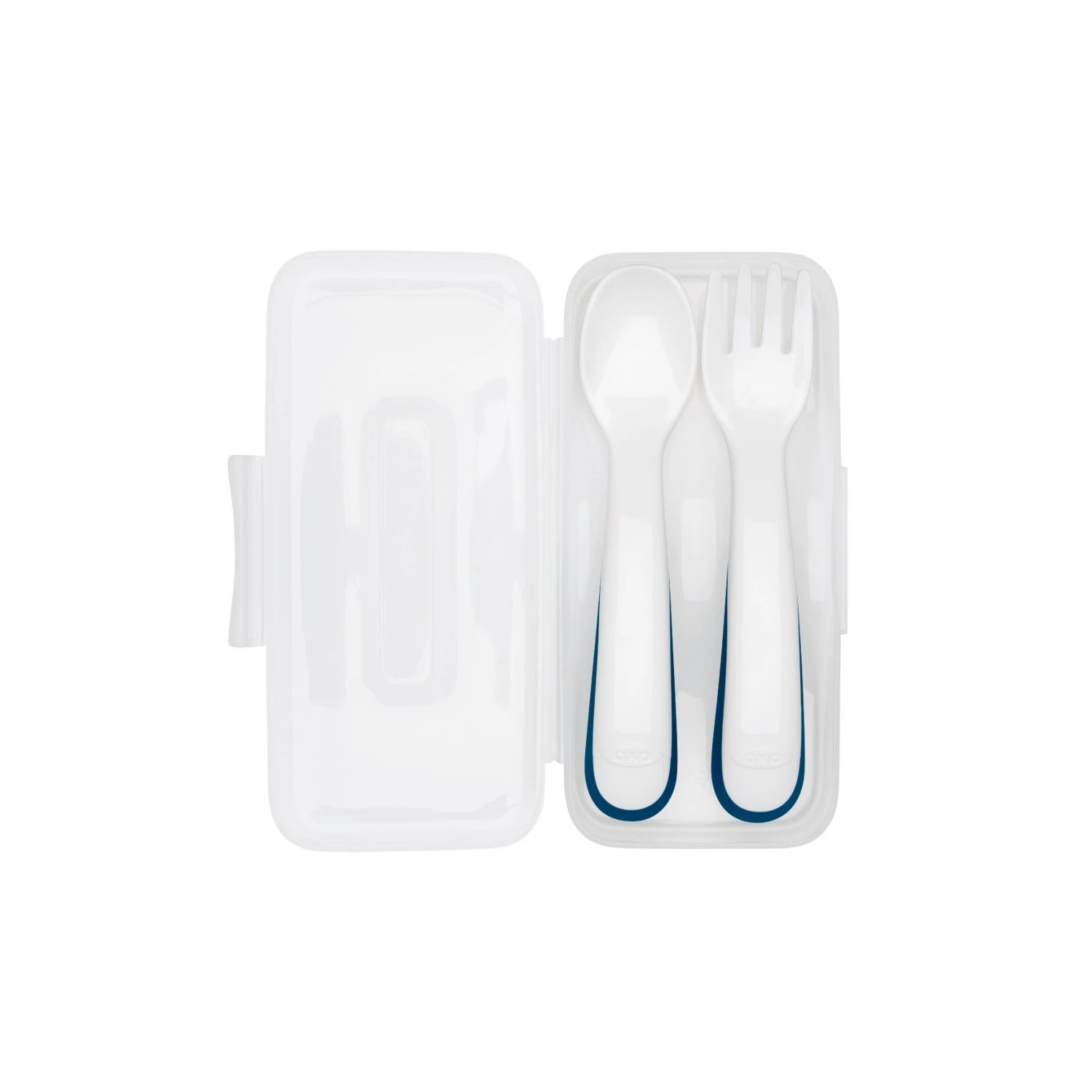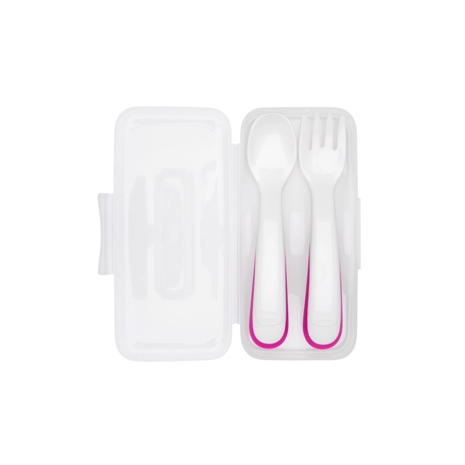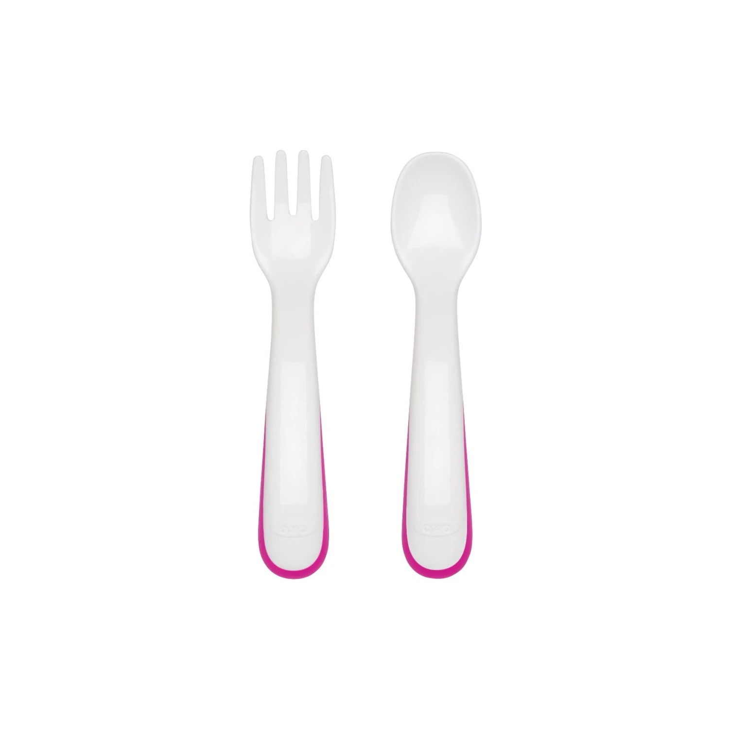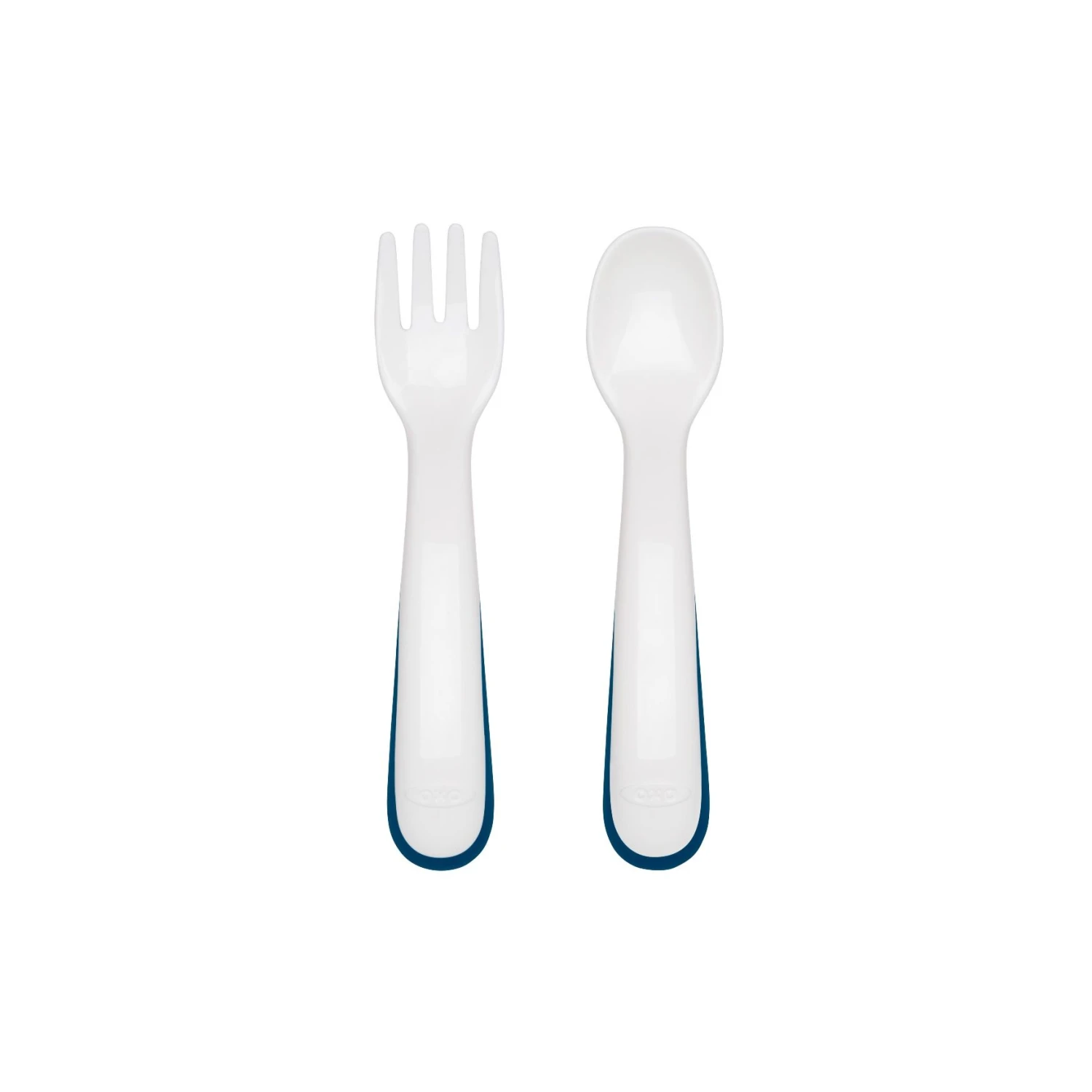 The OXO Tot Plastic Fork & Spoon Set is the perfect starter set for little eaters. The rounded handles are designed with tots’ hands in mind, making it easy for them to grip while taking their first solo bites. The spoon head is the perfect shape and size for little mouths and the rounded fork tines are effective but safe for little learners.