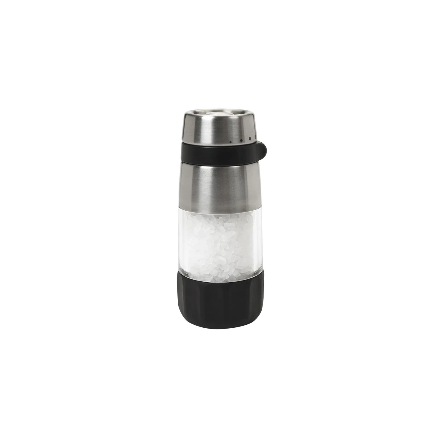 The Salt Grinder is easily adjustable and rests flat when upside down for easy refilling. The non-corrosive ceramic grinder won’t absorb flavors or odors, and is positioned at the top so it won’t leave a mess on the table. The Grinder is sold filled with sea salt.