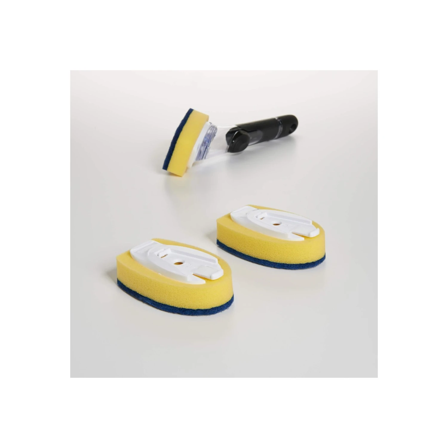 Just push up on the tab to eject the old brush head and attach the new one by simply sliding it on. Durable nylon bristles easily scrub away baked-on food and are safe for non-stick cookware. Comes in a pack of two for convenience and includes replacement instructions.