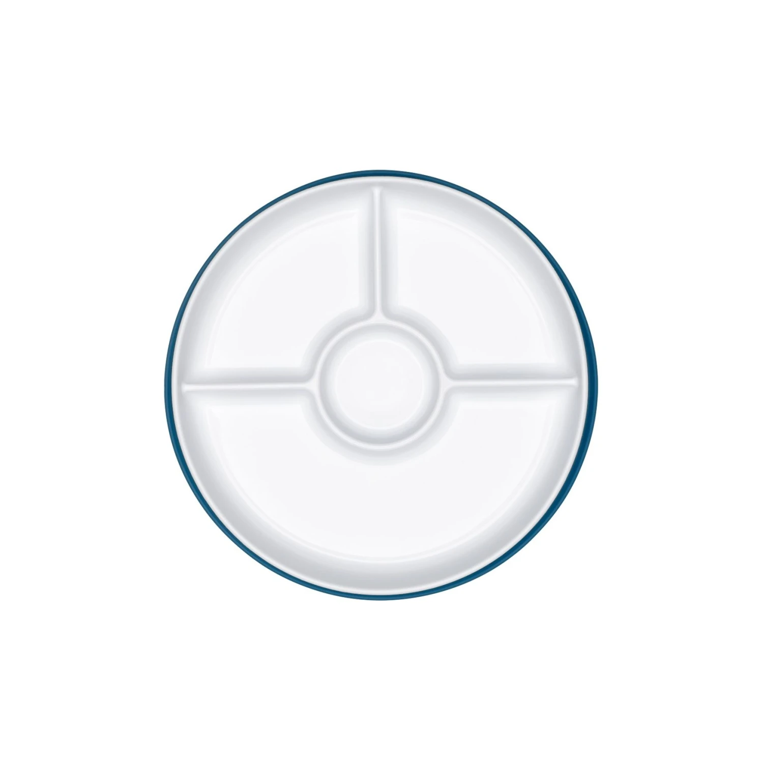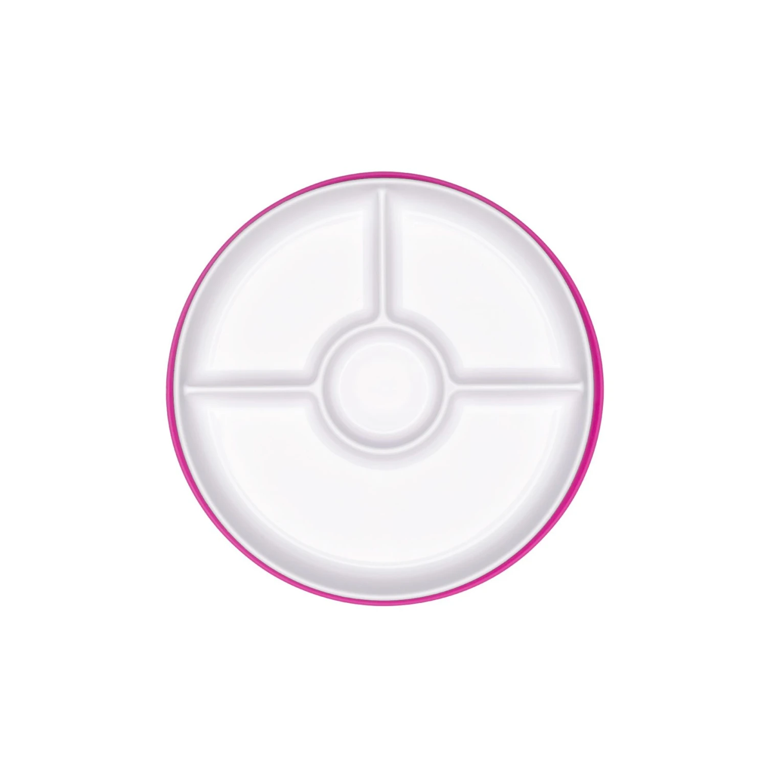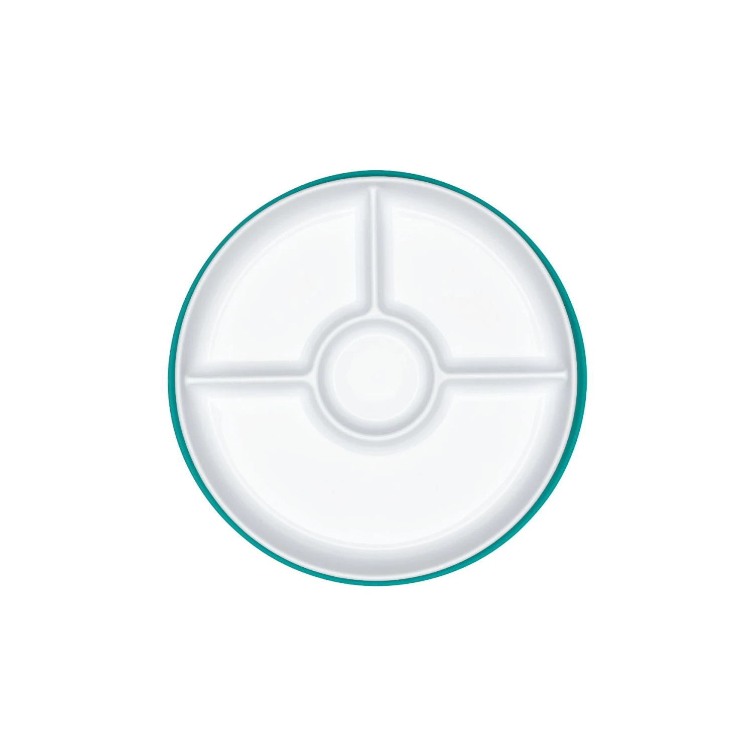 The OXO Tot Stick & Stay Suction Divided Plate has a secure base that sticks on surfaces till mealtime is over. The parent-friendly design is easy for grown-ups to remove, but tricky for tots to budge. That means less slipping, tipping and toppling. The curved side walls promote self-feeding, and four sections (plus a center section for treats) are perfect for portioning. This dishwasher safe Plate and base pad twist apart for thorough cleaning.
