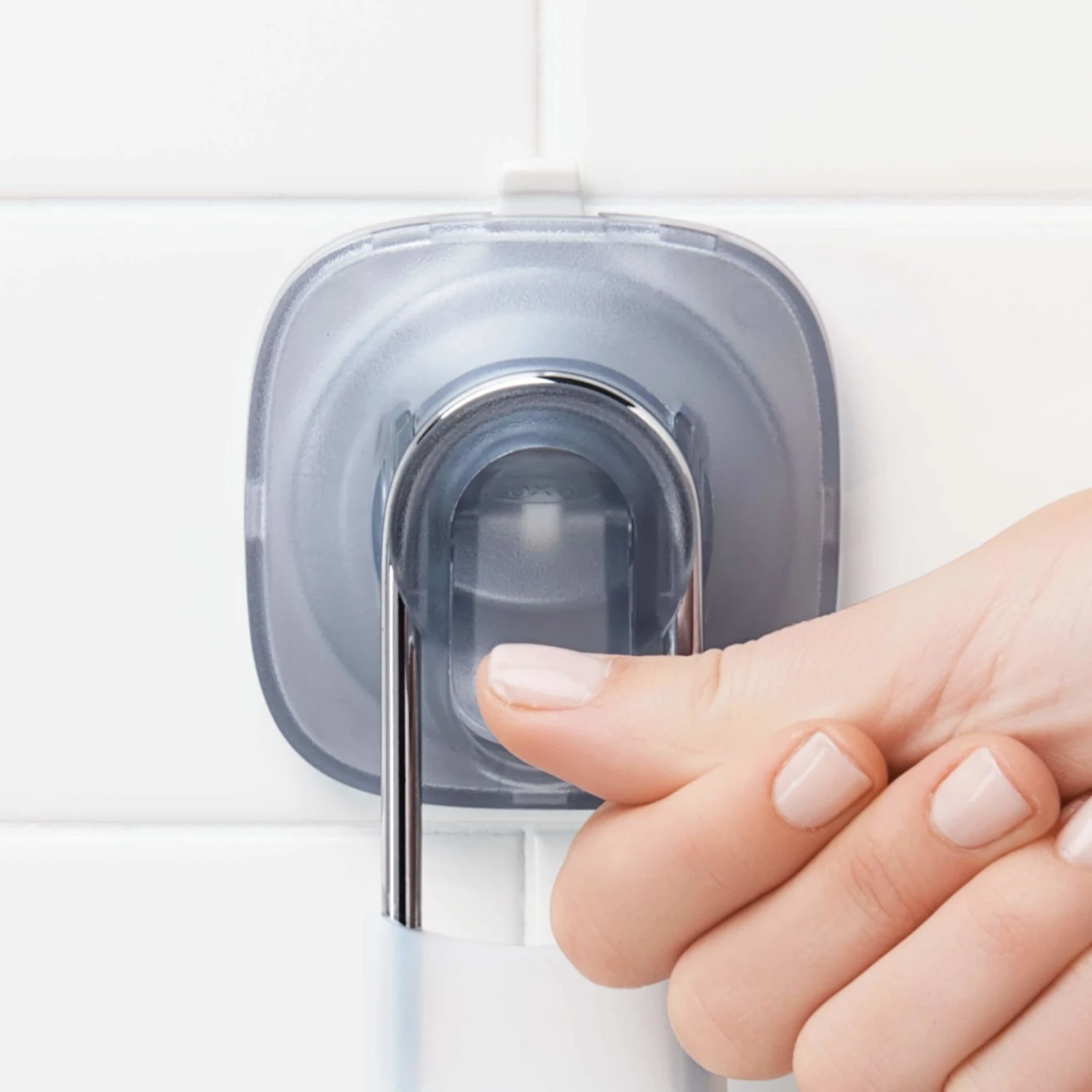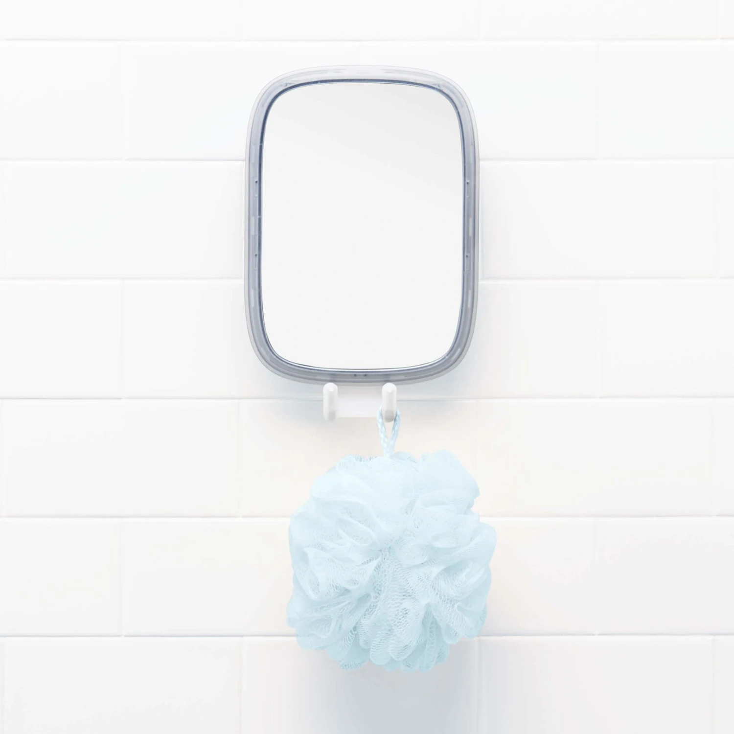 Master your morning routine with the OXO Good Grips StrongHold™Suction Fogless Shower Mirror. The phthalate-free StrongHold™ suction cup securely locks the Mirror onto shower surfaces. The suction cup attaches with the flip of a lever, ensuring a sturdy hold without the need for tools. Fill the internal reservoir with hot water before each shower to keep the surface clear: Equalizing the temperature stops condensation and fog from forming. The acrylic Mirror surface is shatterproof, and the included hooks are a handy place to store razors and washcloths. For best results, use on smooth glazed surfaces, mirrors or glass. Not recommended for use with textured or porous surfaces including some stone, acrylic or metal.